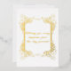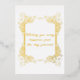 Wedding greeting card in gold foil with black lettering on the back.