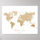 Gold Foil World Map with removable hearts couples Poster
