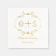 Gold frame and initials elegant monogram wedding paper napkin featuring your initials in a gold frame with leaves on white. This monogrammed chic customisable wedding template design is perfect for a classic wedding. This design can be used for other occasions too, such as bridal showers, engagements or anniversaries receptions and parties.