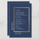 Gold Frame. Typography elegant simple formal navy blue wedding menu.