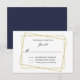 Stylish wedding response card done in white with graphic artwork of a skewed double gold glitter looking frame, with navy blue on back. Black text is ready to personalise, for your wedding. Matching products are available.