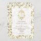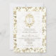 Invite your guests with timeless elegance using this French toile wedding invitation featuring vintage gold floral illustrations and a baroque-style monogram crest at the top. The ornate front design is paired with a modern convenience—a QR code on the back for easy RSVP and access to your wedding website. Ideal for formal weddings, estate venues, or couples who adore old-world charm with a modern twist. Fully customisable with your wedding details, initials, and digital links.