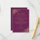 This beautiful enclosure card is designed to provide your guests with additional information on the reception, accommodations, travel arrangements, registry, website, directions, or any other specifics that your guests might require. Features a simple yet elegant design with gold text on a cassis purple or magenta background, a lacy script title, and frilly silver faux foil curls and swirls in the corners.