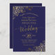 Gold Frills Elegant Navy Blue Wedding Invitation