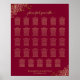 Add beauty and style to your reception with this burgundy & gold 29 table wedding seating chart. The chart can accommodate up to 290 guests with 10 seats per table. The design is tastefully understated and combines a rich burgundy, maroon, or wine red background with elegant golden faux foil frills in the corners. A lovely script calligraphy title adds a touch of sophistication to the layout, and there's plenty of room below for the couple's names and wedding date. This seating chart is the epitome of class and glamour, adding an extra level of refinement to your wedding reception while ensuring that guests can easily locate their assigned tables.