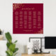 This exquisite wedding seating chart boasts space for 250 names arranged in alphabetical order. The simple yet beautiful design features a a burgundy, maroon, or wine red background with a gold script calligraphy title and golden faux foil lace adorning the corners, making it a perfect addition to your wedding reception. Not only does this seating chart simplify table navigation for your guests, but it also adds a touch of refinement and flair to your special day. Order yours today and make your wedding reception an event to remember!