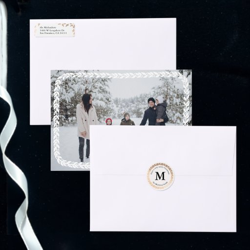 Gold Garland Elegant Photo and Monogrammed White Ceramic Tree Decoration