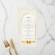 Tempt guests with culinary anticipation through a menu card wrapped in gold geometric artistry, where the ivory arch highlights each course with refined grace. This design turns the meal into a highlighted moment of your celebration, sharing the flavors of your love story with the same elegance as your invitations. Coordinates with other products from the wedding suite.