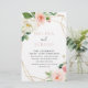 Compliment your classic wedding with this gold geometric fall flowers wedding program. The design features pink, white watercolor flowers with green leaves, adorning a gold geometric frame.