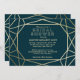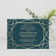 A modern and contemporary winter bridal shower invitation, features a "faux foil" gold geometric pattern over a dark turquoise background. All your details are spelled in a beautiful modern typo.