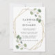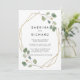 This gold geometric green back and front formal wedding invitation is perfect for an elegant wedding. The design features hand-drawn botanical green eucalyptus branches and leaves adorning an elegant gold frame.