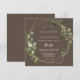 This gold geometric green brown wedding invitation is perfect for a rustic wedding. The design features hand-painted beautiful green leaves in a brown background, adorning a gold geometric frame.