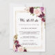 This gold geometric green burgundy floral vow renewal invitation is perfect for a rustic vow renewal ceremony and celebration. The design features elegant green, blush, purple, red and burgundy hand-drawn flower bouquets, adorning gold geometric frames, inspiring class and beauty.