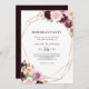 This gold geometric green 50th birthday party invitation is perfect for a modern birthday celebration. The design features elegant green, blush, purple, red and burgundy hand-drawn flower bouquets, adorning gold geometric frames, inspiring class and beauty.