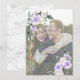 Modern and trendy, this gorgeous wedding invitation design features a faux yellow gold geometric embellished with lilac lavender purple color watercolor roses and flowers, over a faux vellum-look layer, displaying your favorite engagement photo behind. The couple's names and some wedding details are in a matching purple color. The back of the card features a faux Carrera marble texture. Contact designer for matching products. Thank you sooo much for supporting our small business, we really appreciate it!