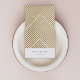 A luxe gold design with an elegant serif style typography font with your custom name over a gold geometric pattern with soft dove grey background. The perfect gift or accessory for any occasion!