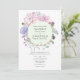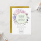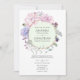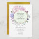 Chic pastel style blush pink, purple and mint floral wedding invitation with gold geometric frame and reverse.