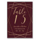 gold geometric red burgundy script wedding table number