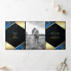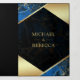 Gold Geometric Royal Blue Marble Photo Wedding Tri-Fold Invitation