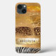 "Gold Girly Leopard Zebra Giraffe Cheetah Print with Gold glitter background and your name personalised iPhone 13 Case." Sparkling Leopard, Giraffe, Cheetah and Zebra prints with assorted gold glitter accent overlays and a gold foil brush stroke that frames your name personalised. The perfect design for a wild girly girl!