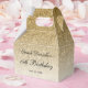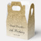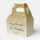 This beautiful favour box features faux glitter and your custom text. Use the template form the add your information. The "Customise Further" feature can be used to change the font and the text layout. You can also add text to the other side of the favour box.