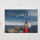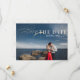 Gorgeous, on-trend save the date announcements featuring your favourite engagement photo. Lovely typography and all white text makes this design truly stand out. Inspired by hand-lettering, these save the date cards are classic and classy with a chic yet traditional touch.