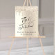 Elegant 75th birthday party acrylic welcome sign and photo prop featuring gold faux glitter dripping from the top against a gold background and "75 & Fabulous" in a chic script. Personalise with her name.