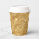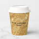 Paper cups featuring a gold glitter background and space for your message.