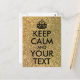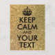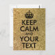 Black customisable "Keep Calm and Your Text" design against a photo of gold bokeh glitter (faux glitter). Edit the text to create your own postcard with a custom text message. If you need smaller font for a longer word, we suggest selecting the entire design before reducing the size.