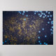 Gold glitter and glittering blue stars on black ba poster