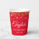 Create your own gold glitter and red gradient 30th birthday party paper cups for your guests.
