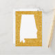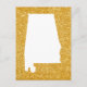 The shape of the state of Alabama in white against a photo of gold glitter. Faux glitter design.