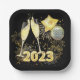 Gold Glitter Black 2023 New Year's Eve Party Paper Plate