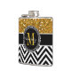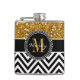 Gold Glitter Black Chevron Pattern Monogram Hip Flask