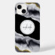 This elegant black and grey with gold faux glitter design looks stunning on this iPhone 14 case, ready for you to personalise with your name and initial. This stylish phone case would also make a great gift for a friend or loved one.