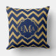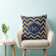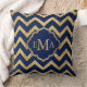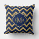 Gold Glitter Blue Chevron Zigzag Pattern Monogram Cushion