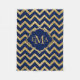 Gold Glitter Blue Chevron Zigzag Pattern Monogram Fleece Blanket