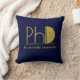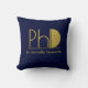 A PhD graduation throw pillow with a (non-foil) gold glitter and blue design. Simply customise with your graduate’s name, add this pillow to your cart, and give this keepsake of their major achievement.