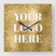 Gold Glitter Border and Foil Logo Square Wall Clock