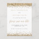 Gold Glitter Borders Script Wedding Save The Date. A convenient postcard to invite your guests to save your date. Gold faux glitter at the top and bottom edges and an informal set script for Save Our date. Easily personalise the rest of the text to your details.