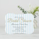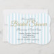 Gold Glitter BRIDAL SHOWER Stripe Blue Invitations.