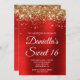 Gold Glitter Bright Red Foil Sweet 16 Invitation