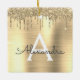 Gold Glitter Brushed Metal Monogram Name Ceramic Ornament