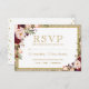 Gold Glitter Burgundy Blush Floral Wedding RSVP Card