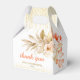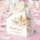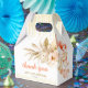 Elegant and stylish floral birthday favour box features stunning watercolor yellowish orange flower with beige leafy greenery and long gold glitter rain garland.