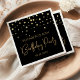 These elegant birthday napkins feature a sprinkling of gold diamond confetti and the words "Birthday Party" in gold faux glitter typography on a black background. Personalise them with the honoree's name and birthday year and the date.