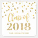 Custom name class of 2018 graduation stickers with gold glitter print effect confetti pattern and modern hand lettered style text.