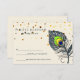Gold Glitter Confetti Peacock Feather Blue RSVP