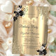 A modern, chic, and glamourous with gold glitter drips, and black roses on a gold background.