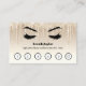 This modern and sophisticated loyalty card design features a glamourous , minimalistic illustration of a woman's eyelashesover a super trendyGold Champagne Glitter Drips background with bold name or business name and title. and six punchout circles in white with black gold border.